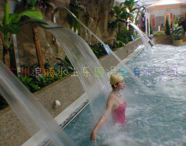 沖擊浴是廣州浪騰水上樂園設備廠家針對溫泉度假村,水療SPA會所等的設計建設推出一個項目。特點和功能是利用扁窄之噴嘴將高密度的水強勁噴射而出,沖擊人體肩部、頸部較小的范圍區間,起到舒緩肌肉緊張感的功效。
